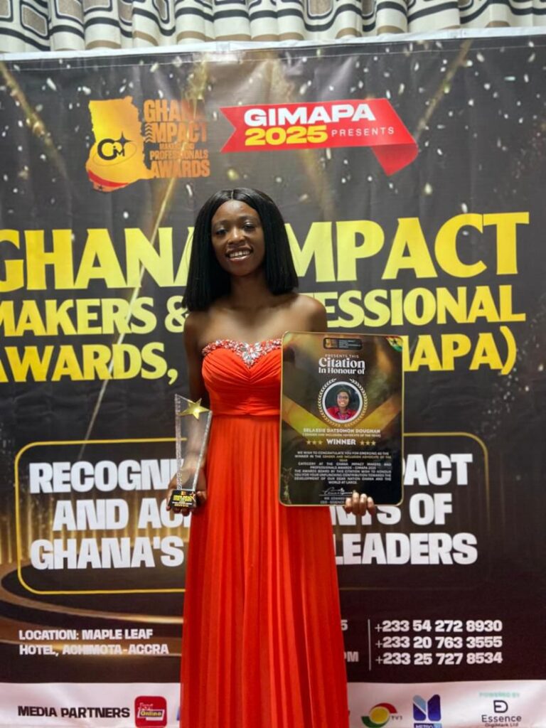 Selcy Foundation CEO wins Gender and Inclusion Advocate Award 2025. Constance Kumi accepts the honor on her behalf.
